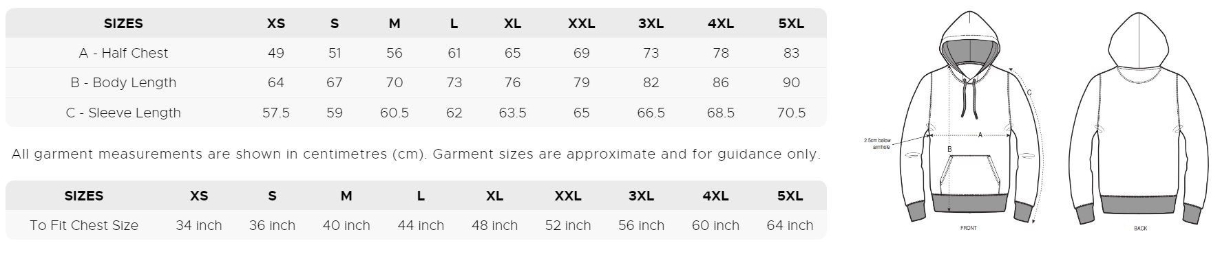 XS, S, M, L, XL, 2XL, 3XL, 4XL, 5XL, Kids XS/3-4, Kids S/5-6, Kids M/7-8, Kids L/9-11, Kids XL/12-13